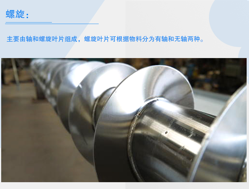 螺旋:主要由軸和螺旋葉片組成,螺旋葉片可根據(jù)物料分為有軸和無軸兩種。