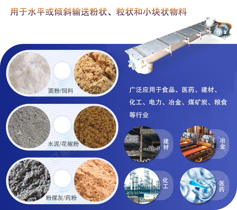 不銹鋼螺旋輸送機廣泛應用于食品、醫(yī)藥、建材、化工、電力、冶金、煤礦炭、糧食等行業(yè),適用于水平或傾斜輸送粉狀、粒狀和小塊狀物料,尤其適合食品、醫(yī)藥行業(yè),可以滿足行業(yè)衛(wèi)生標準,可輸送諸如面粉、飼料、花椒粉、藥粉等對衛(wèi)生要求嚴格的物料。