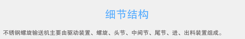 不銹鋼螺旋輸送機主要由驅動裝置、螺旋、頭節(jié)、中間節(jié)、尾節(jié)、進、出料裝置組成。