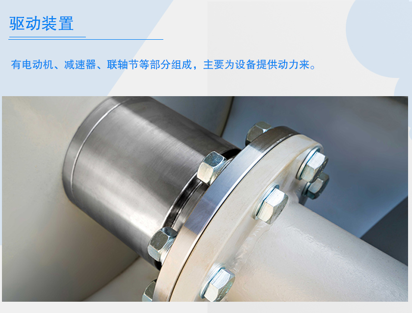 驅動裝置:有電動機、減速器、聯(lián)軸節(jié)等部分組成,主要為設備提供動力來。