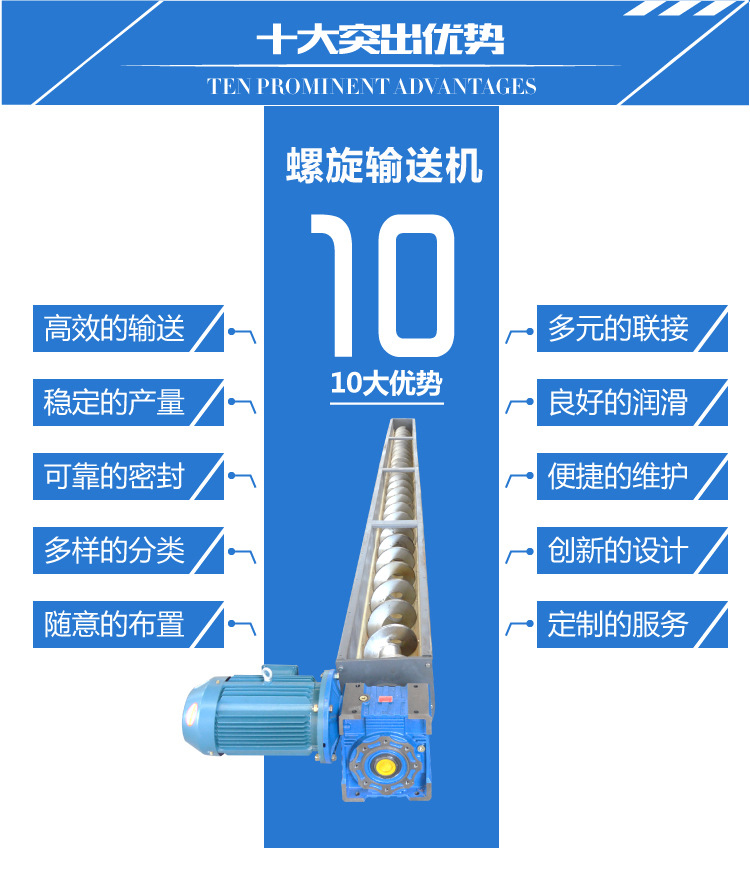4、全封閉結(jié)構(gòu)和易清洗的螺旋表面,減少了物料在整個(gè)輸送過(guò)程中受到污染,改善了其工作環(huán)境;